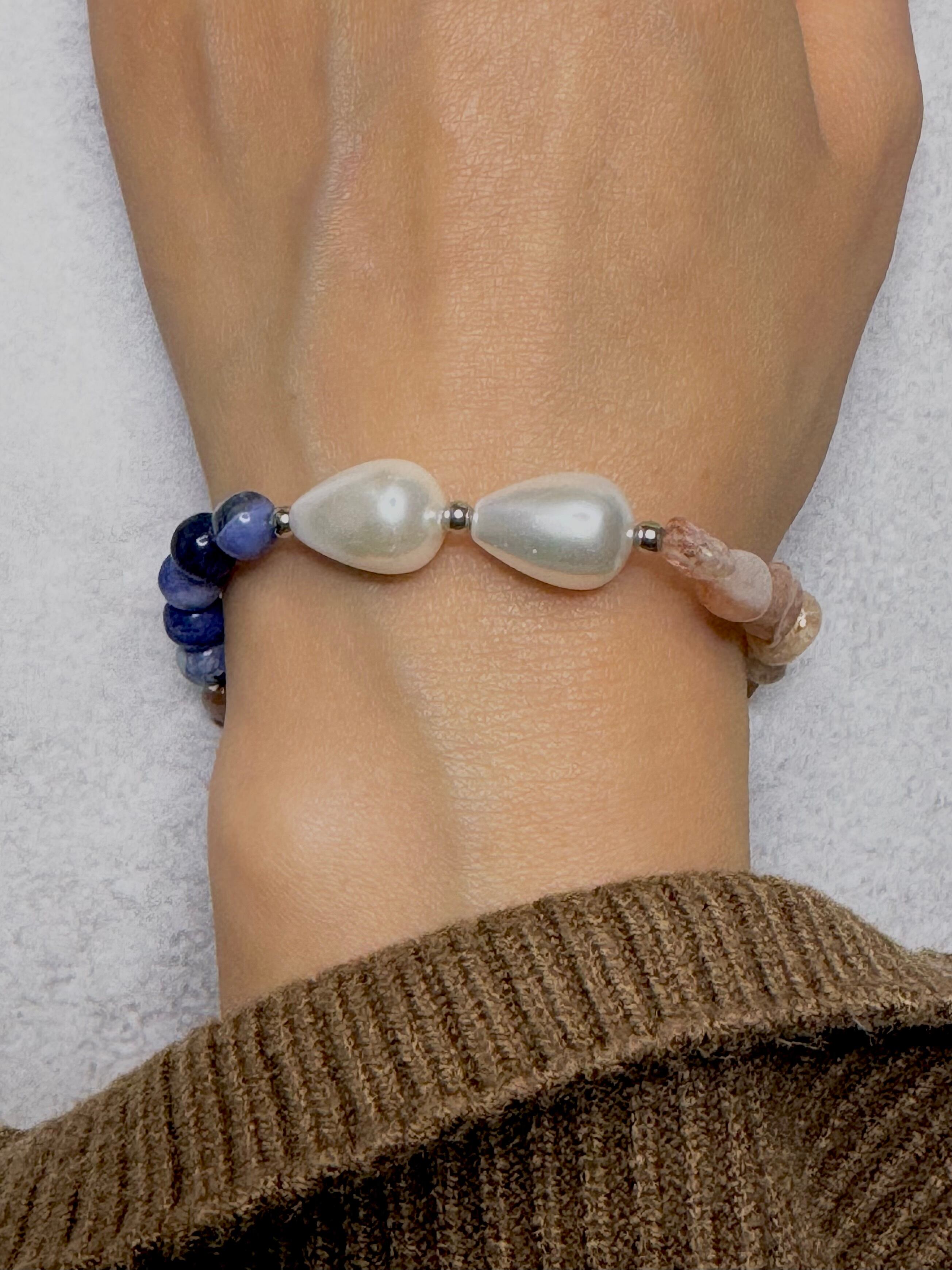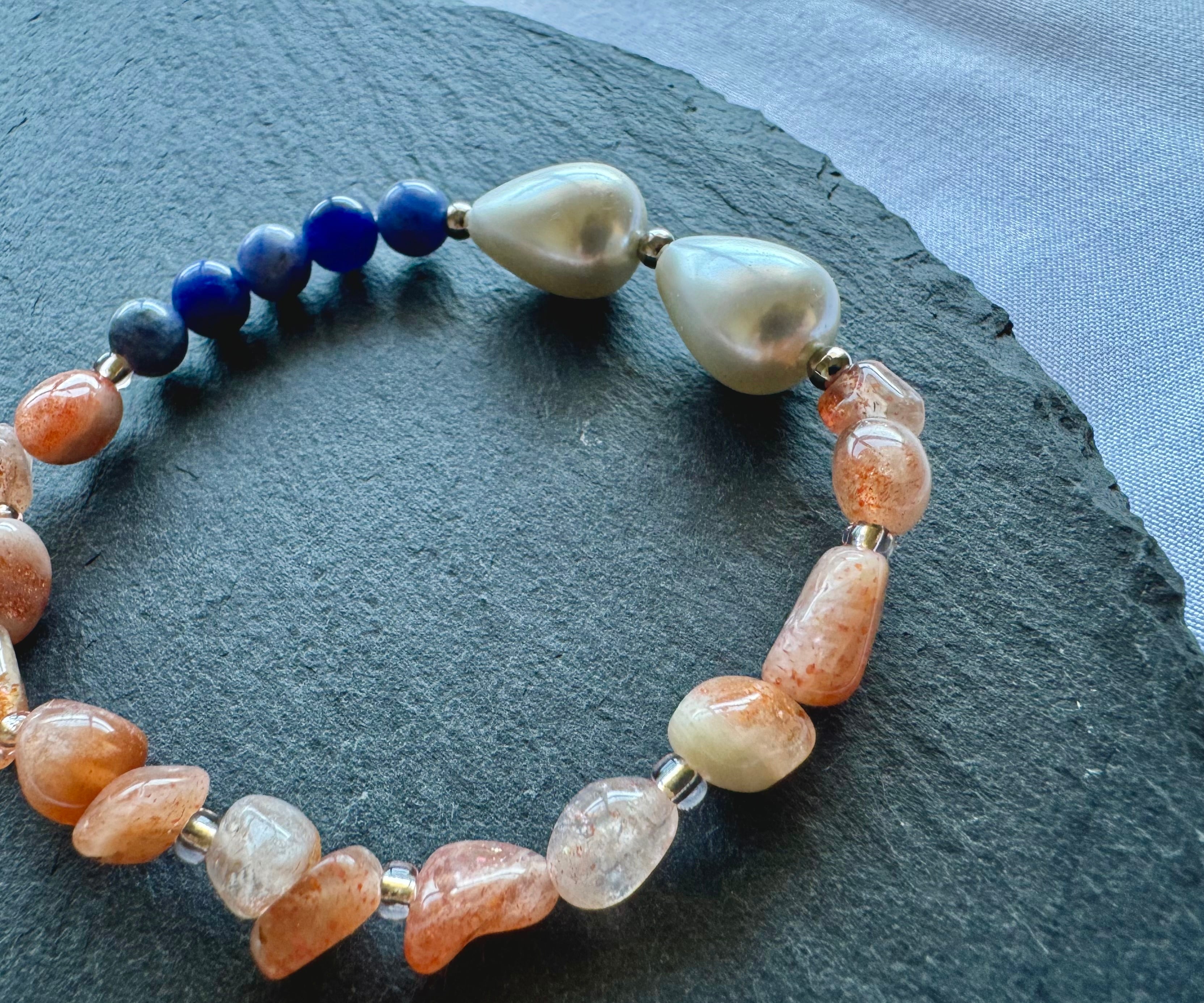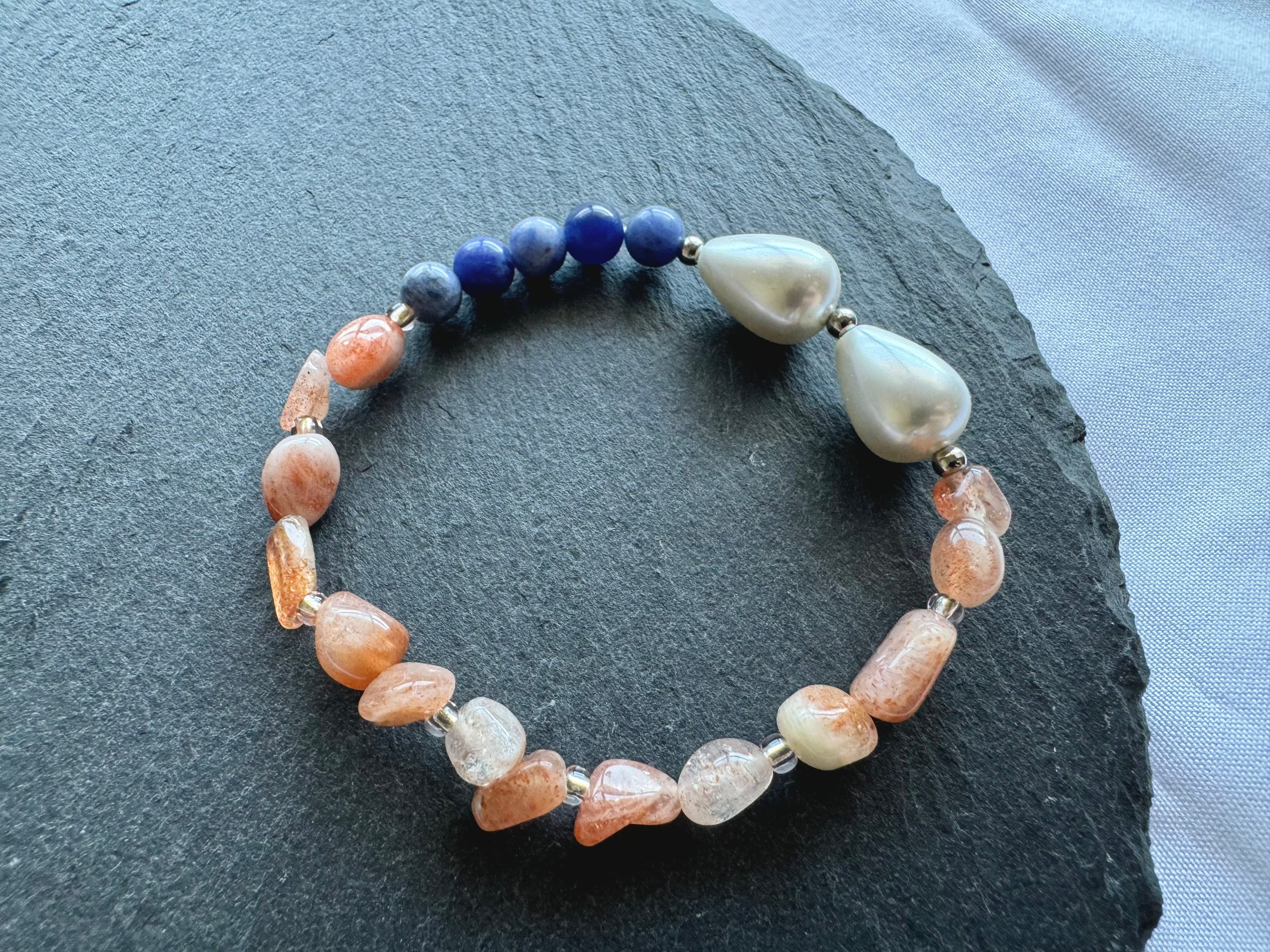 【送料無料】サンストーン✖️貝パール✖️ソーダライトのブレスレット