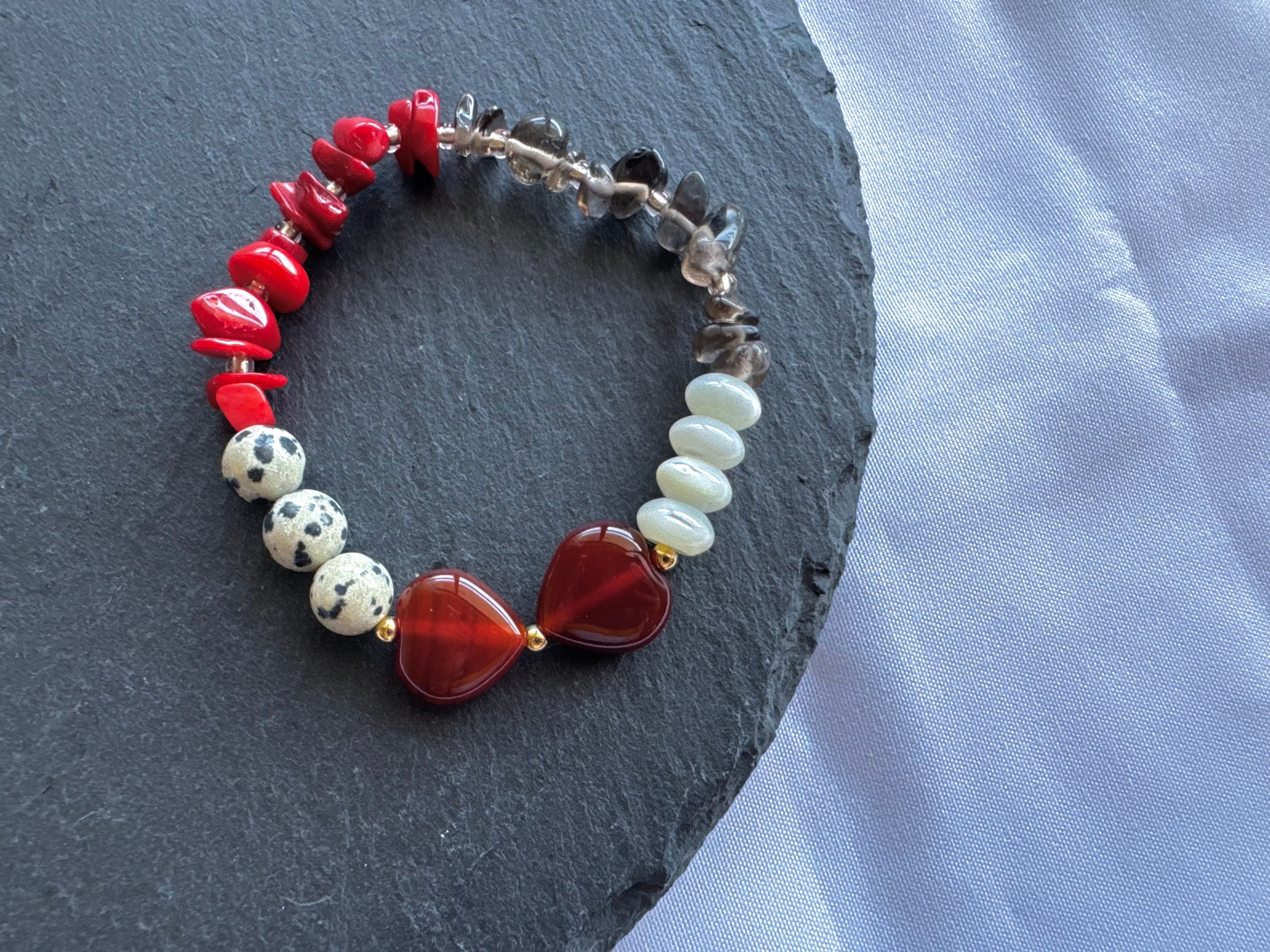 《レッドコーラル✖️スモーキークォーツ✖️ダルメシアンジャスパー✖️レッドアゲート✖️マザーオブパール》