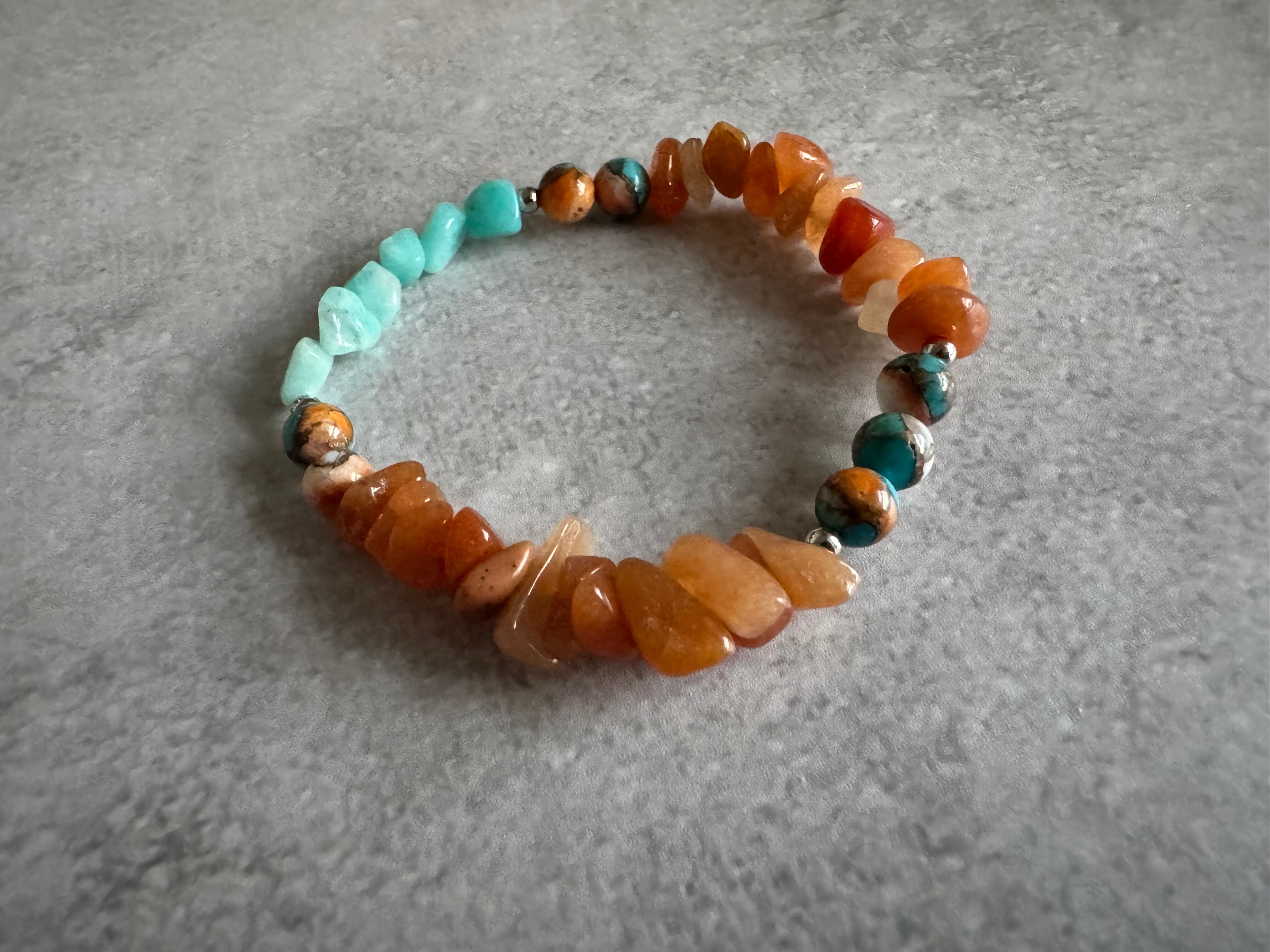 《唯一無二の色、私だけの光》オイスターカッパーターコイズ✖️オレンジアベンチュリン✖️アマゾナイトのブレスレット 送料無料!