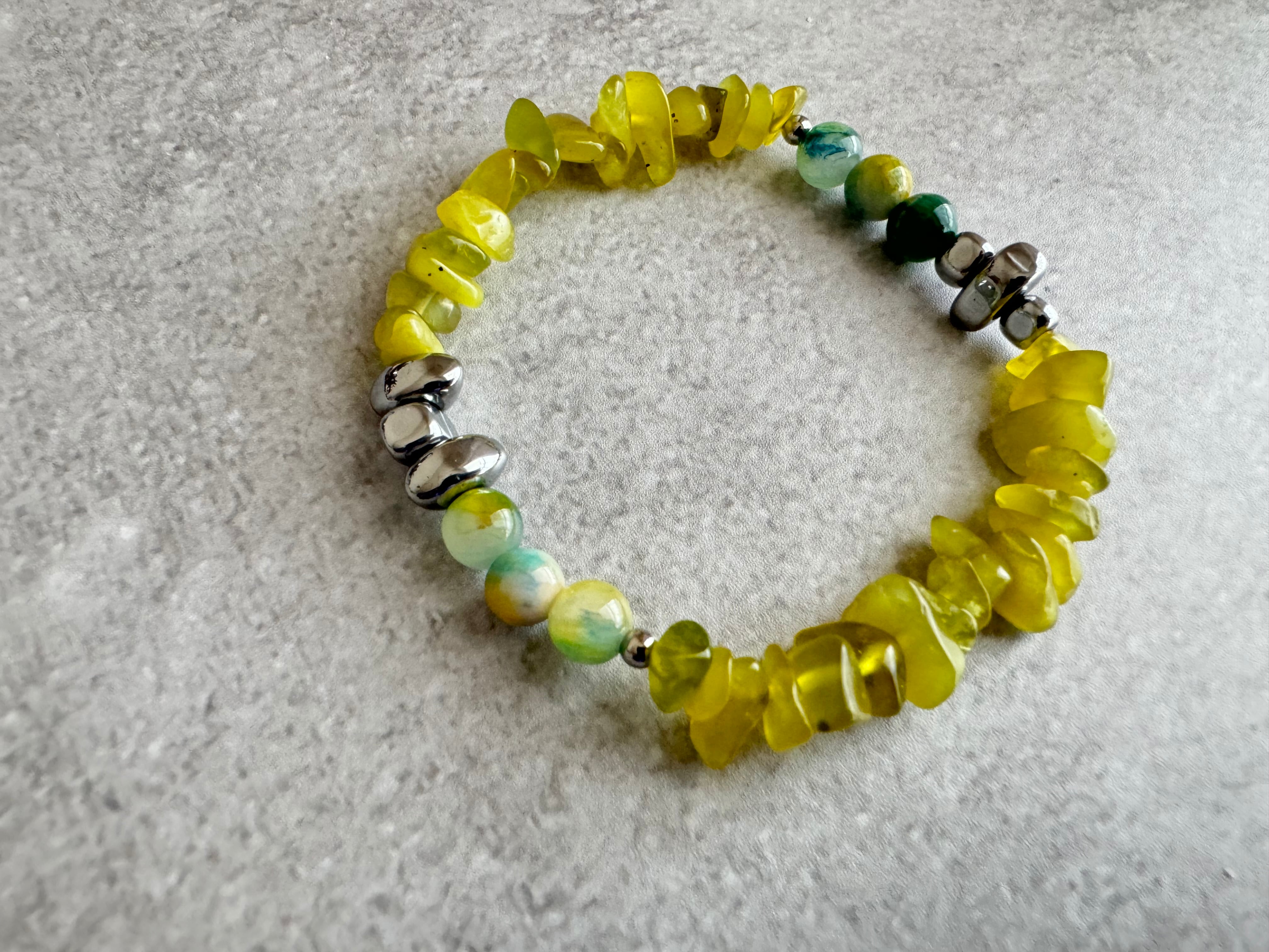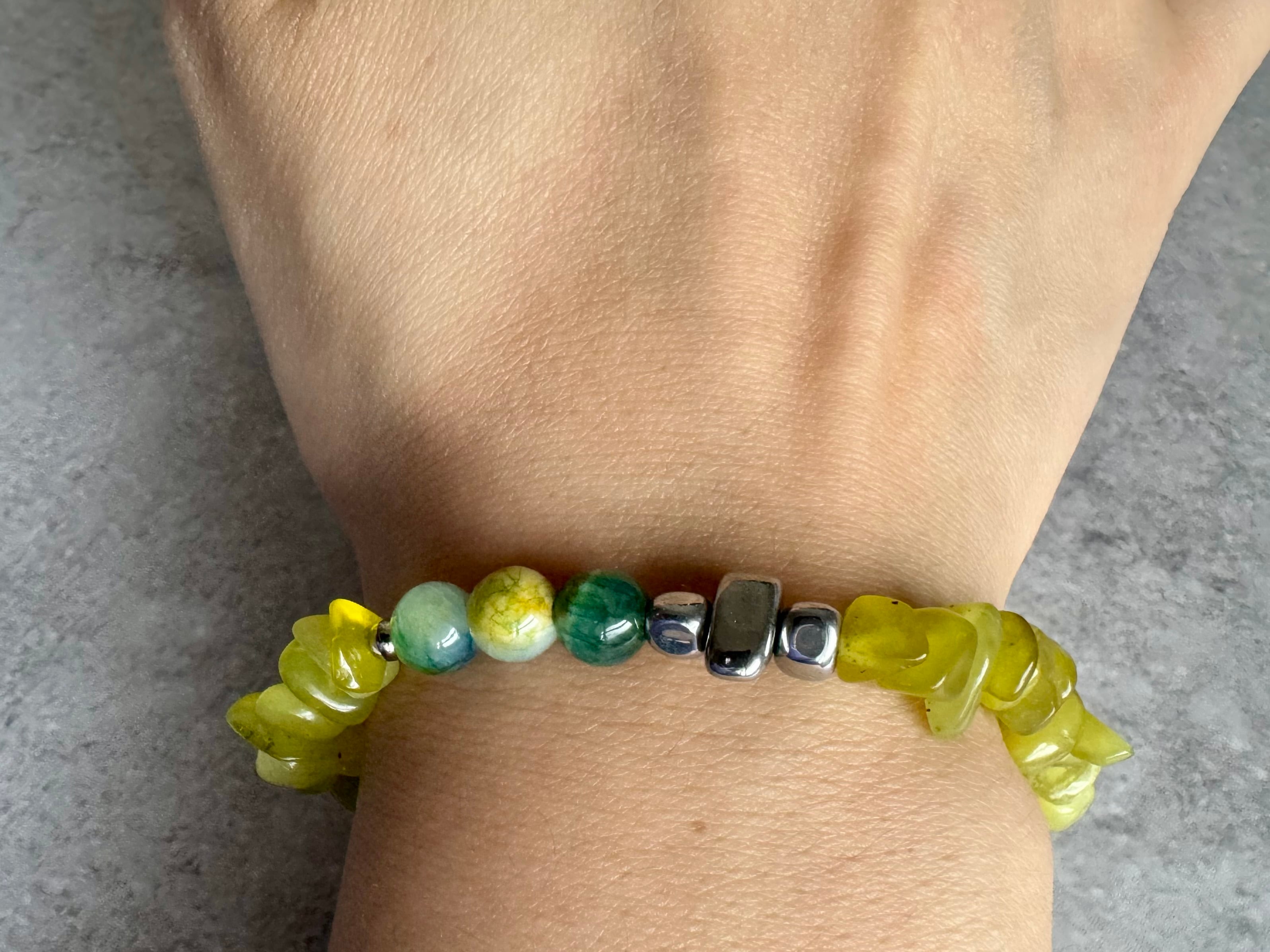 《自然体で、優しく、強く》キャンディジェイド✖️オリーブジェイドさざれ✖️シルバーヘマタイトのブレスレット 送料無料!