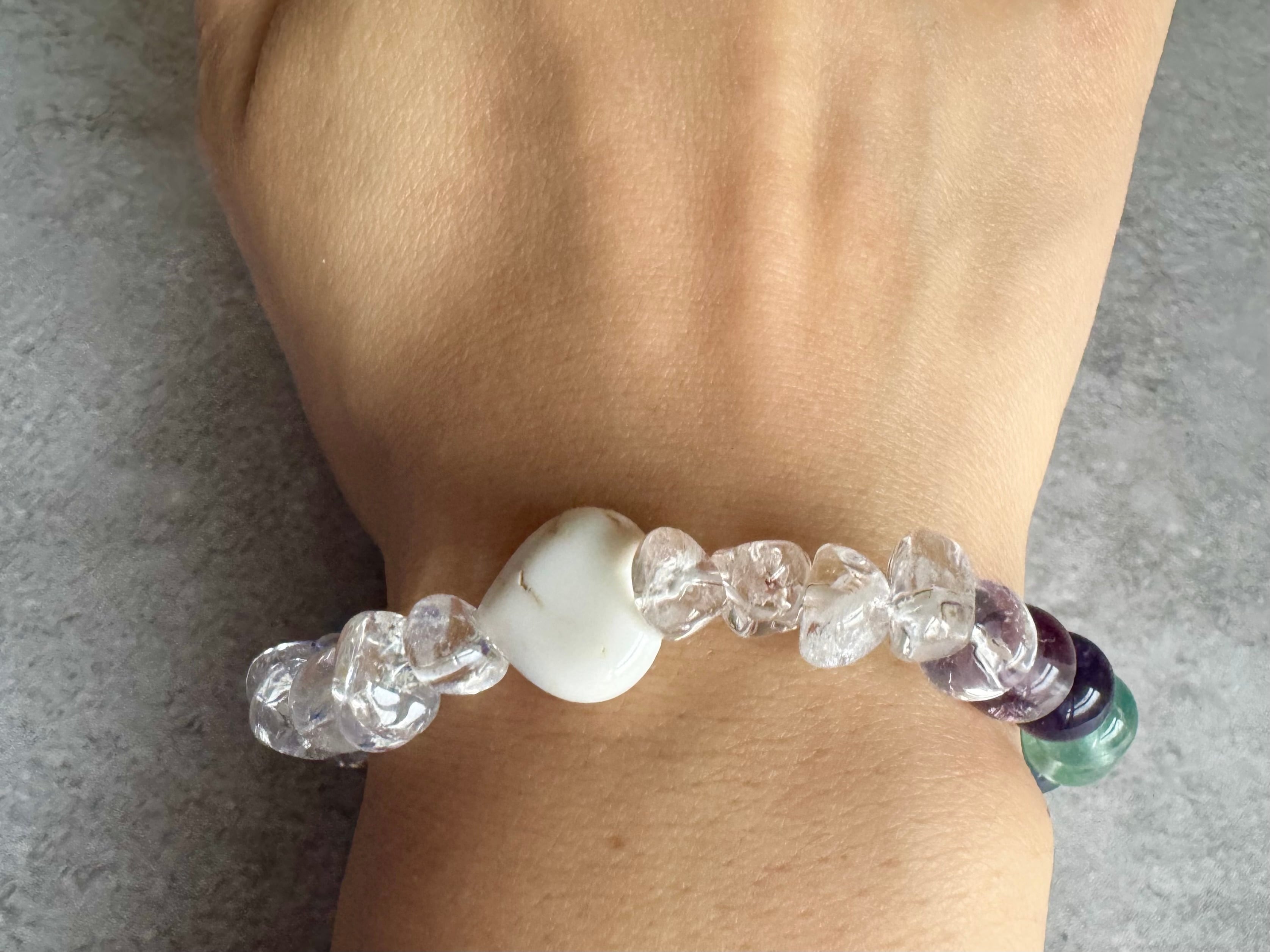 再販♥《心、透きとおる。わたし、ほどける。》マルチカラーフローライト✖️水晶✖️マグネサイト(ハート)のブレスレット 送料無料!