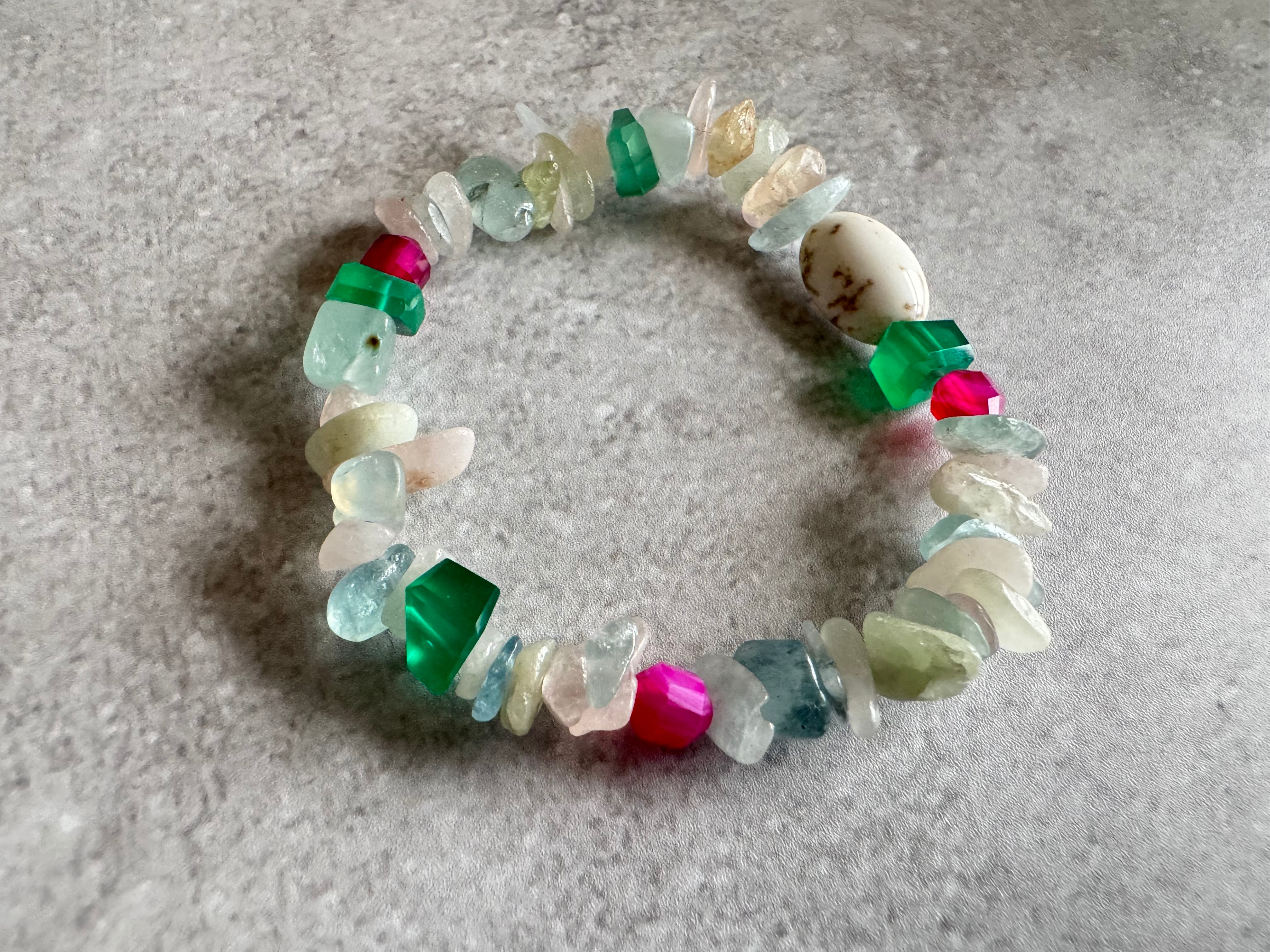 《マルチカラーアクアマリン✖️グリーンオニキス✖️ピンクストライプアゲート✖️マグネサイト》