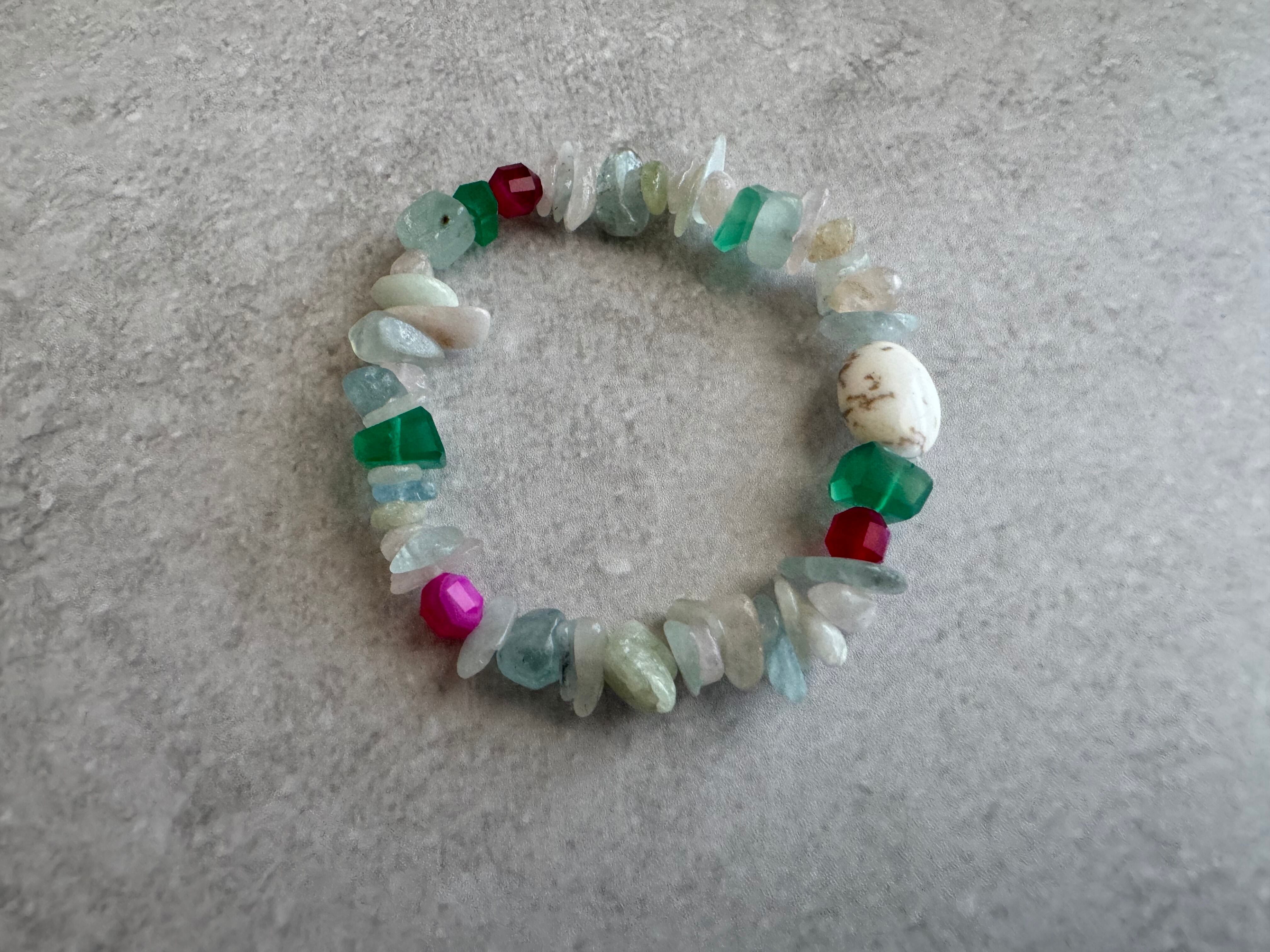 《まぁるいやさしさ、カラフルな私。》マルチカラーアクアマリン✖️グリーンオニキス✖️ピンクストライプアゲート✖️マグネサイトのブレスレット 送料無料!
